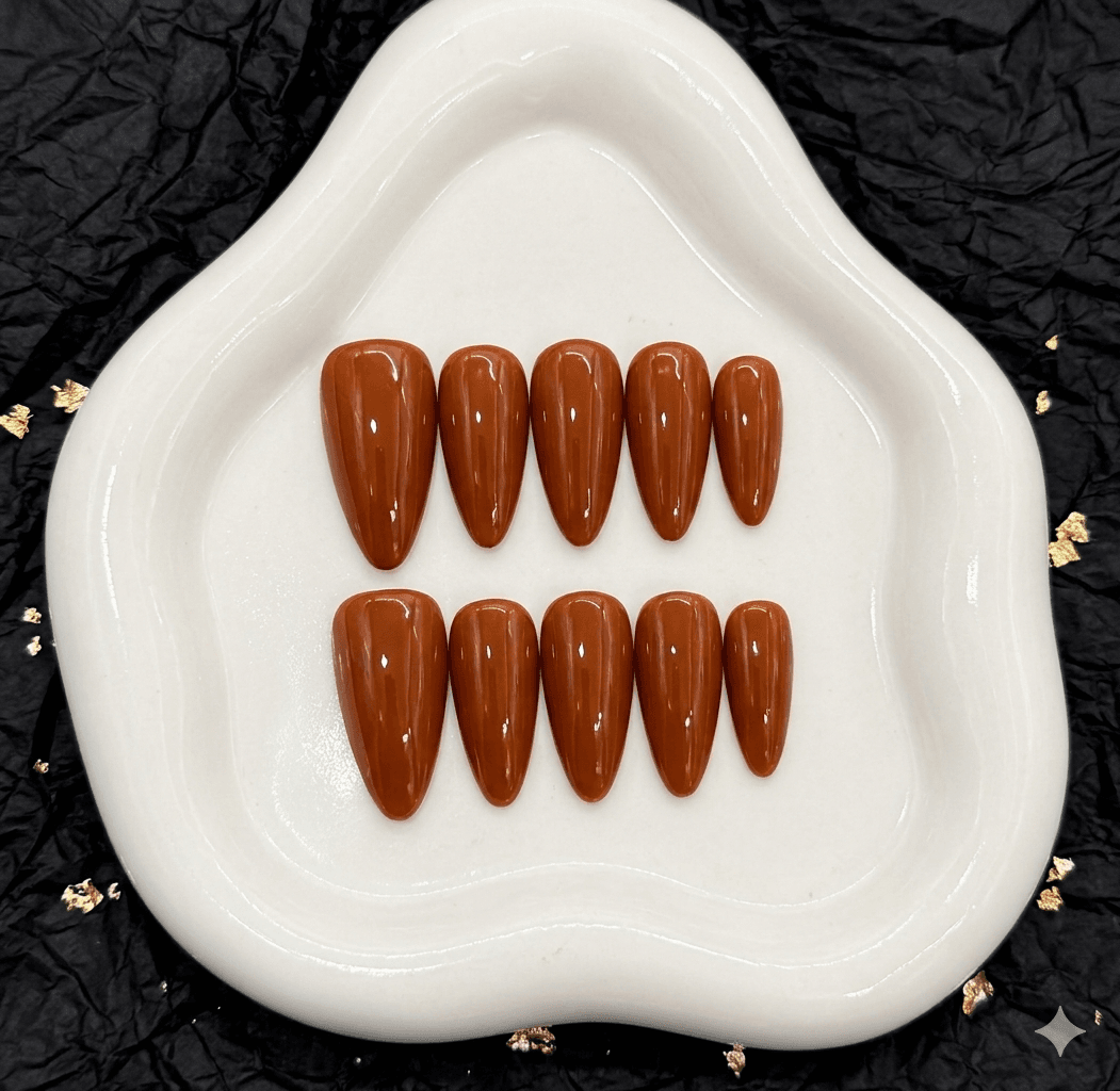 burnt terracotta high gloss luxe almond nailsBurnt Terracotta