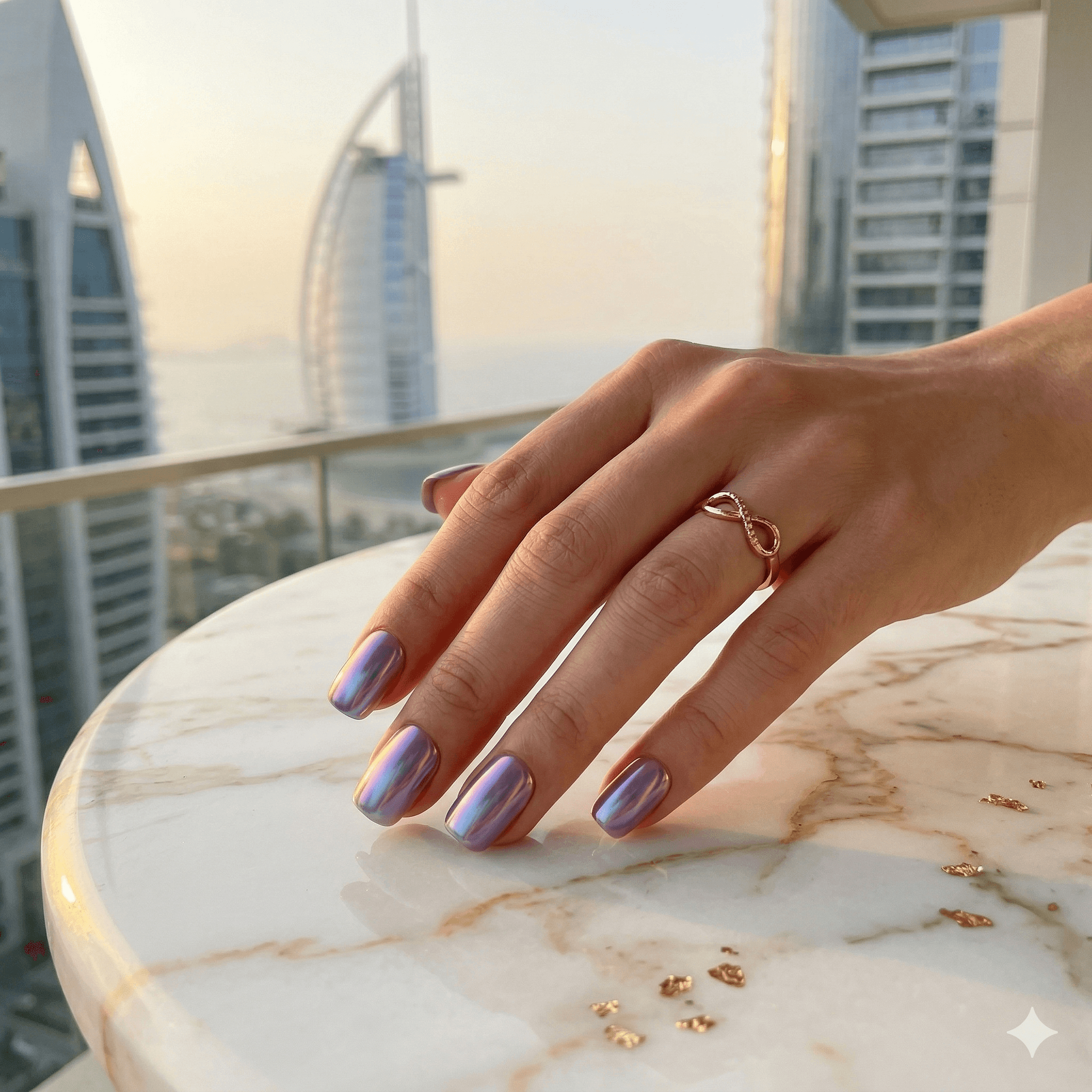Tags: cat eye nails, chrome nails, glossy nails, holographic nails, luxury nails Dubai, Metallic Nails, premium press on nails, PRESS ON NAILS UAE, Reusable Nails, short square nails