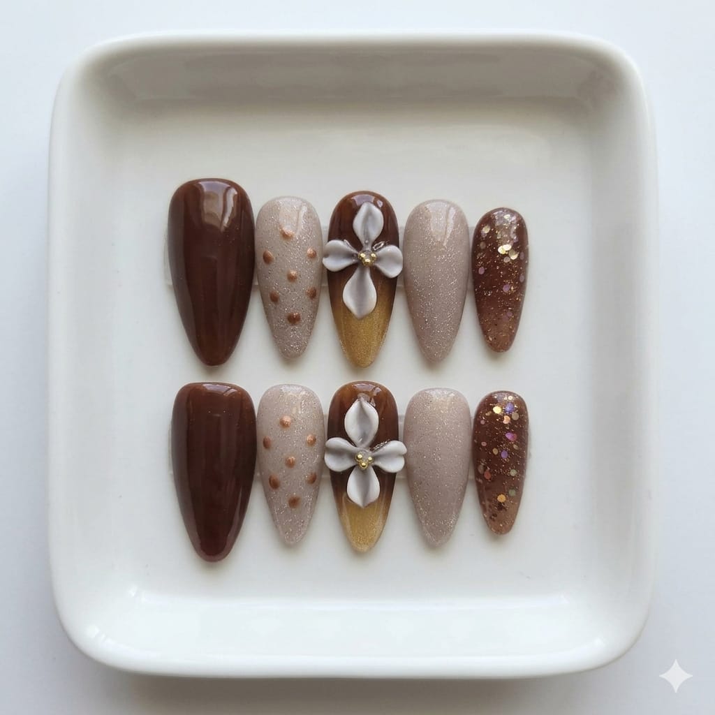 Indulge in the rich, cozy vibes of our Chocolate Cream LUXE set. This handcrafted masterpiece features a sophisticated mix of deep espresso brown and shimmering cream-pearl finishes.