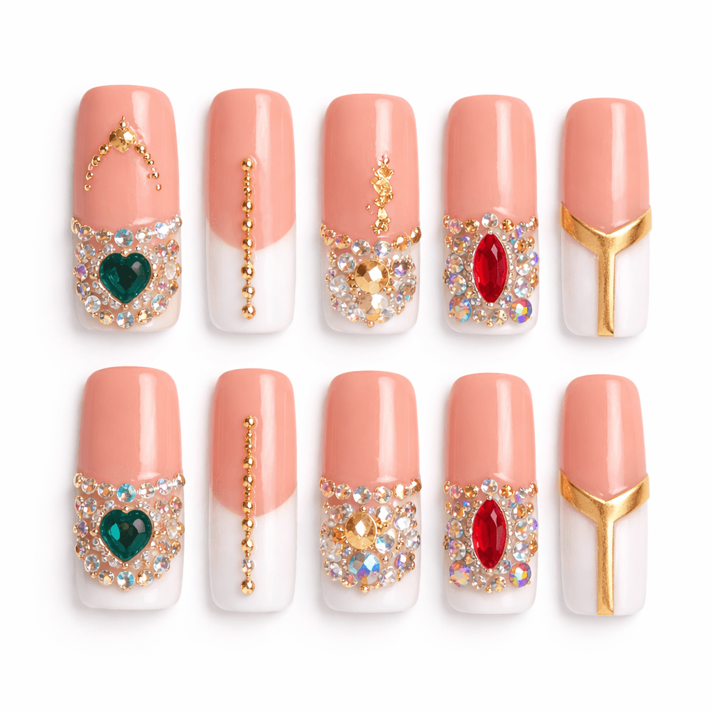 Experience salon-quality luxury with the Royal Empress 3D Crystal Press-On Nail Set.