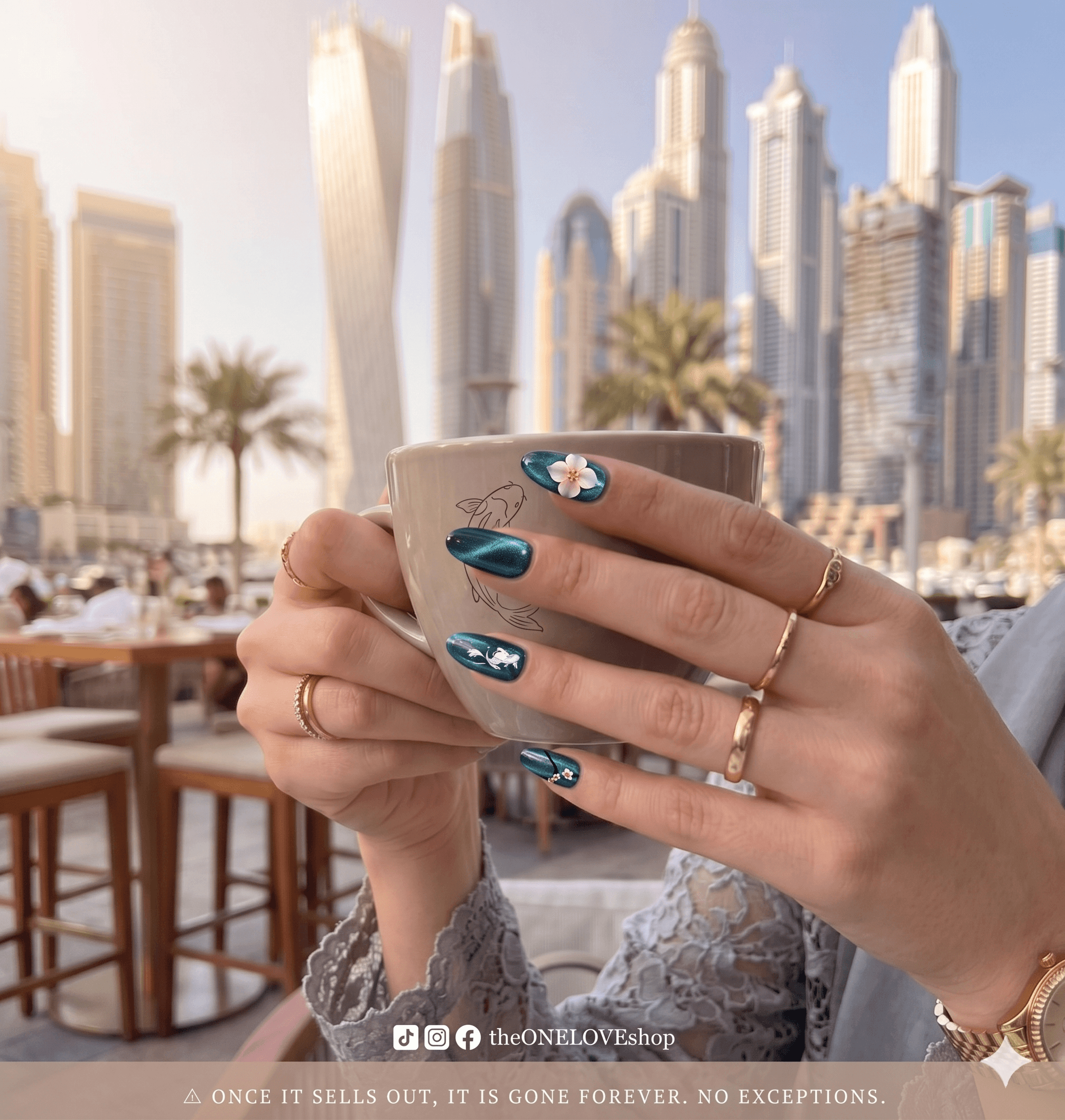 Your beauty, your strength. Dive into luxury with the Teal Ocean Bloom set. Part of our exclusive Basket 6 collection, these handcrafted nails feature a mesmerizing teal velvet finish that mimics the movement of the ocean. Each nail is a canvas of art, blending smoke-effect marble, hand-placed crystals, and signature 3D sculpted flowers for a look that is both refreshing and regal.